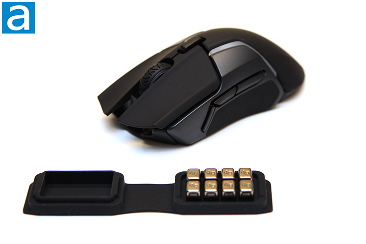 Eight 4g weights placed inside a small rubber case are included from the factory. They can be inserted into your mouse by removing the magnetically attached left or right side cover, shown in our photo below, for up to 256 weight configurations. The left and right side covers are easy to remove, yet they are firmly attached -- a great design in my opinion. Since each side can accommodate four and can be placed in various positions, the center of gravity can be configured to an extent for maximum customization. I think this is a great design and an increasingly rare feature in 2019, especially for a wireless mouse.