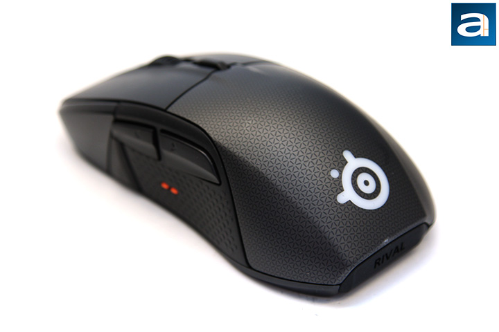 In front of the forward button, and adjacent to the left click button, is a small 128x36 OLED display behind a glossy black finish. The OLED display is there not just for you to upload custom animated GIFs -- although you can definitely do that -- but also serves a practical purpose. In compatible games, it can show in-game statistics such as headshot percentage or gun accuracy. At any other time, you can customize the Rival 700's sensor sensitivity, lift off distance, view key binds, and swap between stored profiles completely independent of software by holding down the sensitivity toggle switch and navigate between menus using the scroll wheel. If none of these interest you, and you still only want animated GIFs, the OLED display can cycle at up to ten frames per second. It is a shame the resolution is not higher, and it is a monochrome display, haha.