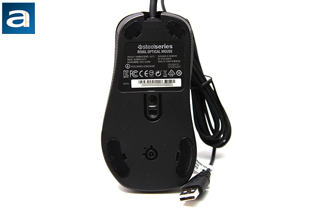 A 2m rubber cable leads out from the front of the mouse via an short cable guide. For a mouse that retails for about $60 at press time, I found it rather surprising the cable is not braided. A braided cable, beside aesthetic purposes, also has lower friction than rubber coated cables for performance benefits. It connects to your computer via a standard, non-gold plated USB connector. When we bring about the question of whether gold plated connectors are actually useful or not, let's just say if it was the actual pins, then possibly -- since gold offers better conductivity than other metals. This theoretically establishes a better connection with your computer, but on a digital signal level, we must understand it is a discrete one or zero; so if anyone tells you they can tell the difference, you can definitely defeat their theory with a double blinded test. Additionally, if you are referring to the gold part of the connector you see on the plug, I would like to point out it actually does not make any physical contact electrically with your computer. In other words, it is nice to have, and it is pretty to look at, but it is not anything significant on a practical level. The lack of a gold plated USB connector will not have any performance impact on the SteelSeries Rival.