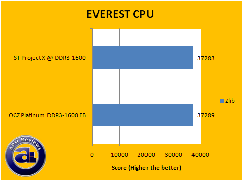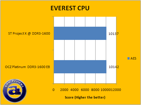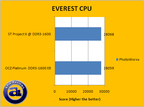 After running each EVEREST 4.00 benchmarks a number of times, statistics are in to confirm each result -- the OCZ Platinum EB and Super Talent Project X had a tight match in each benchmark. The CPU performance tests (As they are RAM influenced) ended all in a theoretical statistical tie.