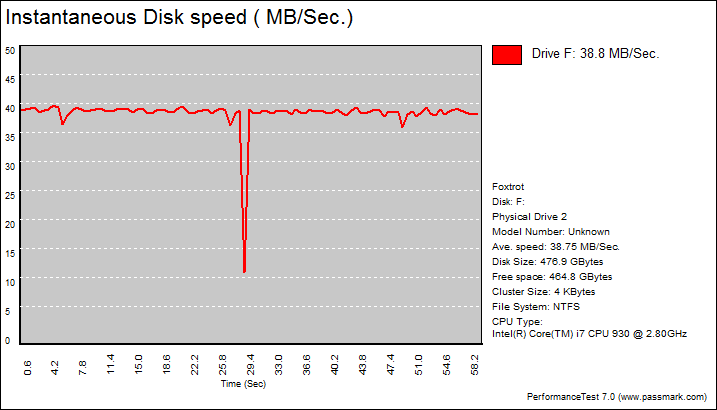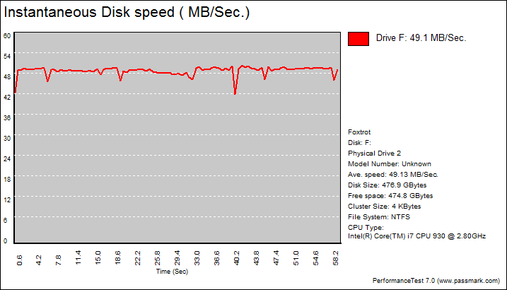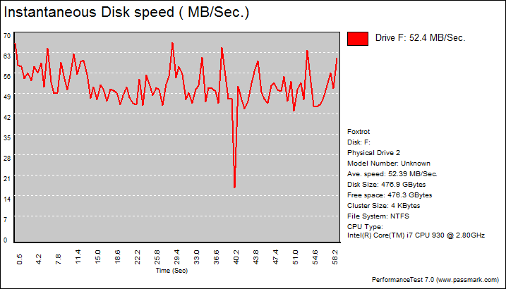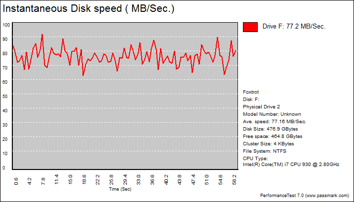 This Advanced Disk Test, which is part of PerformanceTest, measures the data transfer speed when reading or writing data to one or more disks. The speed that data can be transferred between memory and a hard disk drive is one of a system's most important performance aspects. There are quite a few factors which have a bearing on this speed and the Advanced Disk Drive Test allows the user to vary most of these factors and compare the results.