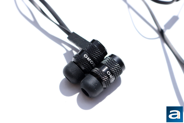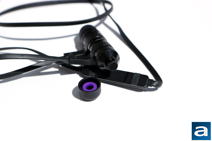 The Tesoro A3 Tuned In-Ear Pro earphones come only in a black color, but I think it looks really nice. The majority of the earbud has a rugged texture, with just slivers of brushed metal in between the rugged parts. The Tesoro branding is found on each earbud in white, but it does not interfere or take away from the modern feel of the design. The back of each is flat with a small Tesoro logo found there. This area is also flat because it is magnetized, meaning the two earbuds can be put and held together by their backs. The magnet is strong enough to work for its purpose without being too strong to tear apart. The metal housing also adds quite a bit of mass, and I was definitely surprised at the earphones' weight when I first held it in my hand. At a measured weight of 17.8g, this is heavier than the V-MODA Forza Metallo, but lighter than the V-MODA Zn. Even so, it caused me to have some reservations as to how well these would stay in my ear.