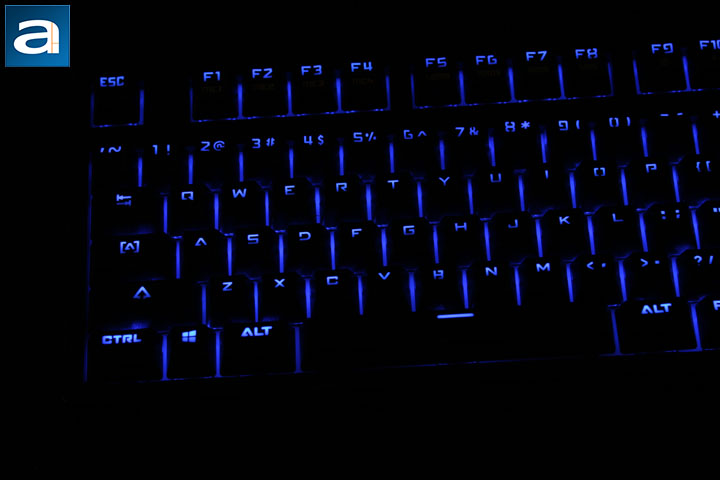 It can be seen from the photo above, the illumination distribution is even for all keys. This is because the Tesoro Excalibur SE Spectrum avoids double line labels. The downside is, for the keys that have secondary functions (e.g., from the F1 to F12), those function labels are not illuminated, since these labels are just printed on the keycaps. It is a worthy compromise in my opinion, since most of the time, those secondary functions are not that hard to find if you are not in an absolutely dark place. Once you have familiarized yourself with this keyboard, you can remember where to find them.