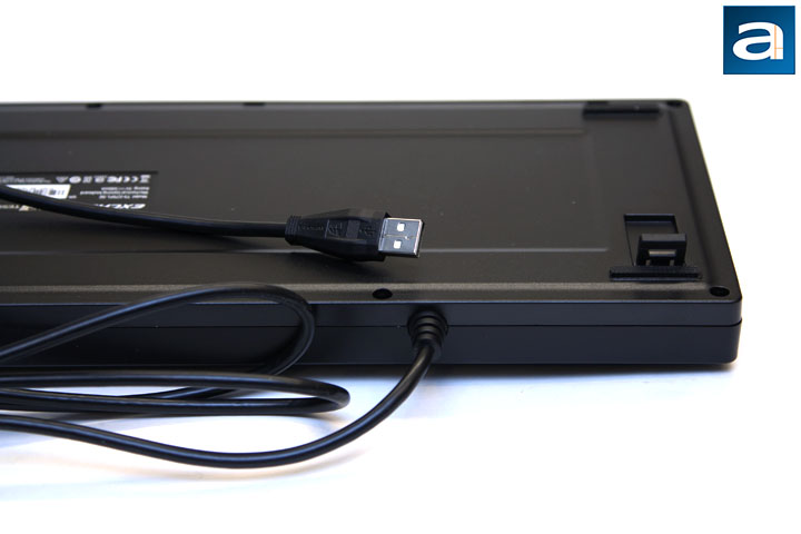 The Excalibur SE Spectrum is a wired keyboard, therefore, it requires a USB cable to connect to the computer. This time, Tesoro does not provide the same braided USB cable as the Excalibur Spectrum. Instead, a 1.8 m long rubber coated cable is used. As you can see from the above photo, the cable is non-detachable. I personally prefer to not have detachable USB cable on my keyboard, since the more connectors you have, the higher chance you will get bad connections. The USB connector of the Excalibur SE Spectrum is not gold plated. Note that the gold plated connector is only there to make the keyboard look good. There is no actual performance improvement regarding data transmission. At the bottom of the keyboard, there are four pieces of rubber strips: Two at the back and two at the front. All of those rubber feet can provide enough grip to allow the keyboard to be as stable as a mountain. Two risers at the front feature adjustable rising levels. It is worth noting the risers are also rubberized to enhance the stability of the keyboard when risers are applied.