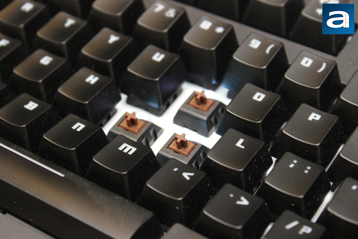 The Tesoro Excalibur Spectrum features Kailh Brown mechanical switches, which are starting to get popular nowadays as an alternative to the Cherry MX. Other switches available, according to Tesoro's website, are Kailh Blue and Red, which are clones of the Cherry MX Blue and Red, but with some slight alterations. For example, Kailh actually has a higher actuation point in comparison to Cherry MX switches, and thus the distance between actuation and reset is smaller. In addition, these keys are rated to last to sixty million keystrokes; ten million more than typical Cherry MX switches. For both Kailh and Cherry MX, brown switches are what I would call a hybrid switch that accommodate both gamers and typists. They feature low resistance for typing, have a low actuation force to trigger them, but do not produce an audible ‘click’ on every key press. However, they feature non-linear travel with a tactile bump in the middle to tell you when the key has been actuated. To sum it up, the Brown switch is a more silent version of the Blue switch. Preference of which key will come down to consumer opinion.