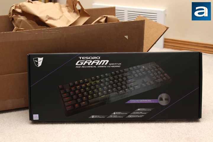 The Tesoro Gram Spectrum arrived via USPS and Canada Post, operating in their respective countries. As usual, the large brown corrugated cardboard box arrived from Tesoro's American office in Milpitas, California. The box arrived in excellent quality, with zero dents or holes to mention of. Inside we have the keyboard as expected, with lots of brown packing paper to cushion any blows the box may have received during shipment. I have never been convinced with how paper itself can really cushion anything, but since so many people use it, there must be some merit, so onto the keyboard box we go.