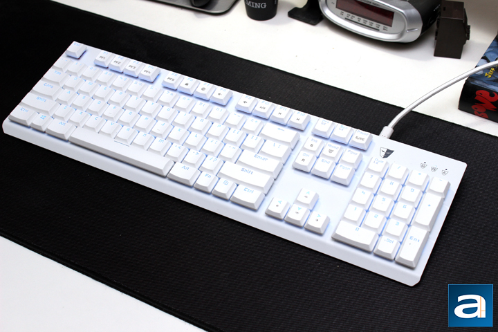 The Tesoro Gram Spectrum came to us with a standard 104-key QWERTY ANSI layout. This is pretty normal and is practically the same as every other keyboard APH Networks has reviewed recently. However, if you do look closer, you will notice the bottom row is a bit differently sized, with the Fn and Menu key being a regular key size, while the Alt key on both sides are larger. Three small blue LED indicators exist on the top right hand side beside the Tesoro logo. The first one is marked by a G, indicating when the keyboard is in gaming mode. In this mode, the Windows key is disabled and your macros are available here. The next two LEDs are for Num and Caps lock, respectively. It seems more and more manufacturers are dropping the Scroll lock indicator, as less people are using it.