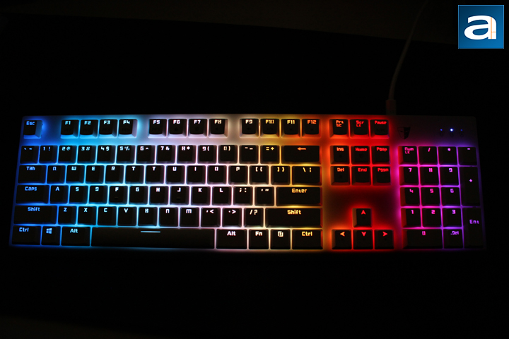 As for lighting, Tesoro uses the "Spectrum" word to denote the RGB-ness of their products. Customizing color is becoming a standard thing nowadays, and the Gram Spectrum is no different with its RGB lighting capabilities. Similarly to the AZIO MGK L80 RGB, majority of the letters are printed, or in this case injected, onto the top of the keys, where the LED is situated. For all the keys with secondary functions, they are not translucent, and have just been injected with a dark gray like color. When the lights are off and the illumination turns on, these lower parts of the key do not light up. This does mean you cannot see these secondary functions in the dark, but I think it is an acceptable compromise, rather than having uneven lighting. As for the lighting quality, I think the Gram Spectrum looks even prettier than the rest. This is because of the white backplate, which reflects the lighting and makes for a very under glow effect. As the bottom of the switches are translucent and exposed, the light shines through, making this keyboard one beauty.