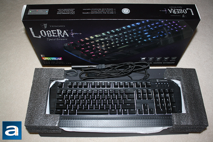 After peeling the plastic seal from the box, I carefully pulled out the matte black box containing the keyboard. I was rather pleased at how Tesoro had gone the extra mile in using the matte black box to protect the product aside from using its retail packaging, and to give it a little more mystery. Lifting the two side tabs on the box, and pushing the top open, you will find the Lobera Spectrum wrapped in a thin foam pocket. On both sides holding the foam pocket and keyboard were black foam bumpers to further protect the keyboard in transit. Other items Tesoro has included are a product manual, and a CD containing product information, drivers, and software for the keyboard. However, Tesoro does recommend users to get the latest drivers from their website. You know, for those who have access to the internet, and no longer has an optical drive on my computer like me.