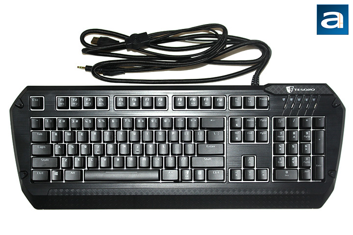 Although there was no official showdown at sundown, the Lobera Spectrum accepted the challenge, and took the opposition by surprise. The design of the Lobera Spectrum was done exceptionally well, and still impresses me to this day. The two different finishes on the surface of the keyboard makes it very attractive, with the smooth brush-like metal contrasted with the diamond plate floor pattern. If I had to summarize the build quality of this keyboard in two word, it would be 'rock solid'. With the numerous rubberized feet and its hefty weight, it will not move on you unless you want it to. The features of the Lobera Spectrum are really the icing on top of the cake. The goodie bag of features waiting for you to explore include the full-color illumination, wrist rest, media keys, storage of up to 300 macro keys, USB ports with audio in and out, and full NKRO. In terms of features, there are not many I could think of to add to the keyboard. Not only does it have many features to offer, it does a good job of presenting them to users. But since no system is perfect, there are items Tesoro could improve on. For one, Tesoro could do a better job in allowing users to know which profile they are currently using by utilizing the space under the Function keys. Also, with the full-color illumination feature, it was a bit disappointing to see the LED lights at the top right corner not change colors, even when in RGB rainbow mode. Lastly, I believe Tesoro can work on their application, so users will have an easier time using it and it would work with the Windows settings. Luckily, the utility does not play too much into the normal usage of the Lobera Spectrum, and updates can be released over the internet. In the end, the Lobera Spectrum is a rock solid keyboard in both build quality and features. Even at a price tag of $150 USD from Tesoro, the Lobera Spectrum is a good contender for your money.