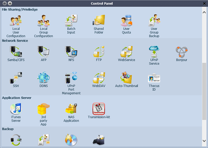 Moving to the File Sharing/Priviledge (Note: I was actually surprised at such a simple yet obvious spelling mistake) section, we are able to configure the file accessibility for each user. Under Local User Configuration, the administrator can create, edit or remove users. Each user can be limited to specific folders, or have access to all of the NAS’ contents. The Local Group Configuration allows for grouping of users for better organization. The Batch Input allows the admin to enter in all the users at a single time by importing a text file into the configuration. The format of how to do so is also explained in this submenu. The Shared Folder manages the files in the shared file. The User Quota is as the label states: This limits the amount of storage given to each user. Finally, under User Group Backup, this allows for exporting and importing of user information, which can be handy in the case that the Thecus NAS device requires a fresh start.