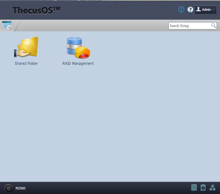 Upon first logging in, and I found this operating system to be quite barren. The front page is without many icons, as much of them are hidden in the Control Panel. In terms of appearance, it is passable, but feels outdated. Rather than creating an interface similar to a preexisting mobile or a desktop operating system, the entire design feels very much like a legacy Windows application, with an overly-blue appearance. Of course, this is not a Windows application, and is actually a Linux-based operating system with an AJAX powered GUI. The icons in ThecusOS are easy to understand and straightforward. However, many modern operating systems are moving towards a flatter icon design, with a very minimalistic feel. These icons are full of detail, and are almost cluttered to an extent. While this does not affect functionality, I think Thecus should look at refining the layout aesthetically. The overall use of AJAX for design is easy to use, but compared to other NAS operating systems, Thecus could put a bit more work into refining the looks of ThecusOS. The front page also includes a search bar and System Log and Help buttons in the top right-hand corner. The Admin drop-down menu allows users to change their password, the language, and to log out. In the bottom left corner is a power button used to shut down or reboot the network attached storage system.
