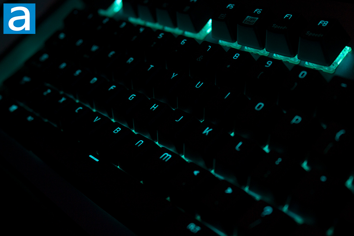 The Thermaltake ARGENT K5 RGB features Cherry MX Speed Silver linear switches. They have a 1.2 mm actuation distance, total travel distance of 3.4 mm, and an actuation force of 45g. If you are not used to these switches, you may find yourself accidentally pressing keys due to the short travel distance. As the ARGENT K5 RGB is mechanical, the switches are much more solid compare to membrane keyboards. Comparing these to other linear switches I have used, it could be smoother, but for a pre-built keyboard, it is still competitive. The ARGENT K5 RGB also comes in a Cherry MX Blue variant, which is better suited for a louder, tactile feel.