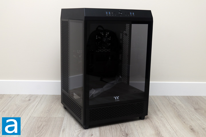You might be thinking you have seen this case here at APH Networks before. While this is not technically true, I reviewed the Thermaltake The Tower 100 Snow last year, and The Tower 500 is like an upscaled version. Taking a look at Thermaltake's lineup, this is actually the middle child of three in The Tower family, with the 900 being the largest and the 100 being the smallest. As such, many of the design elements remain the same, including its three tempered glass panels to reveal the inside and chimney-style design. The full black exterior and interior make this case feel a bit stealthy, although the same cannot be said for its size. The entire unit is made up of SPCC steel and tempered glass, with plastic on the top portion of The Tower 500. In terms of looks, I still really like this case for its extravagance and unique looks. The design is consistent with its siblings in the same product lineup. Thermaltake has also kept its branding to a minimum with one "TT" logo at the front.