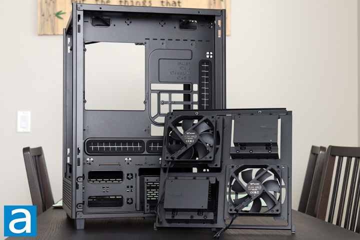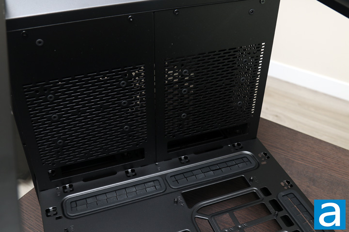 Finally, at the bottom is an opening for a power supply. This supports a full-sized ATX power supply with a lot of room in the basement area for extra cabling. Users can also install two 120mm front facing fans or a 240mm radiator in the basement for even more cooling.