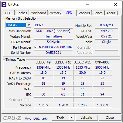 The photo above is a screenshot of the SPD tab in CPU-Z with Thermaltake’s TOUGHRAM XG RGB DDR4-4000 2x8GB installed. The SPD timings table in CPU-Z reads standard JEDEC specifications programmed into the memory along with XMP/DOCP data for running the RAM at various speeds. My MSI MAG B550 Tomahawk motherboard used for testing was perfectly capable of getting all the information about the TOUGHRAM XG RGB RAM. It should be noted that you may need to manually set the DOCP profile in the BIOS depending on what motherboard you are using. The Thermaltake TOUGHRAM XG RGB DDR4-4000 2x8GB retails for $185 at press time.