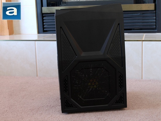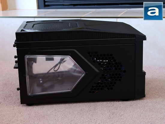 As far as the side panels go, both sides are asymmetrical. At the back end of the side panels of the Armor A30, you will be greeted with a pentagonal-shaped window, with its tip pointing towards the front. Thermaltake also includes fairly large ventilation holes on the side panels, which is designed in a way that it wraps around the so called "tip" of the windows -- making it look awfully like an arrowhead. This design quite reminds me of the volume control slide on my Lamborghini keyboard reviewed by yours truly a little while back. Since the Armor A30 is geared towards mini-ATX and micro-ATX motherboards, you will find out very soon it would not matter too much how you cable your internals if you are not a cable enthusiast like myself. Most of your components will be block the view out anyway, unless you decide to put lights in, then your cabling job can be seen through the ventilation holes. Whatever the case may be, if you ever decide your cabling job does not matter all that much, you can at least do yourself a small favor and keep the wires away from the windows, so you can still show off your nice video card and heatsink.