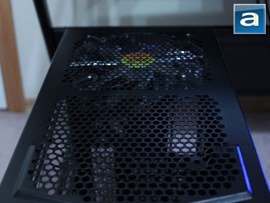 In this image above, we are shown the top view of the Armor A60. Basically, it is like the Armor A90, except with the removable top plastic panel missing. It actually has quite a dramatic effects on the looks -- if you don't believe me, look at the photos on Jonathan's review on the A90. Meanwhile, the A60 features two honeycomb grilles similar to the one found on the left side panel, albeit much larger, to accommodate 200 mm exhaust fans (One blue LED unit rated at 15 dBA @ 800rpm is included). This offers great natural advantage for ventilation, since heat rises. But also be very mindful that the large opening at the top also allows dust to easily settle into your chassis. This problem will become quite irritating, especially when your computer is sitting around for a while! Users may wonder if there are any solutions to this. To be honest, there is no solution, unless you would not mind covering that area with a cloth. And that defeats the purpose of having these openings in the first place, haha.
