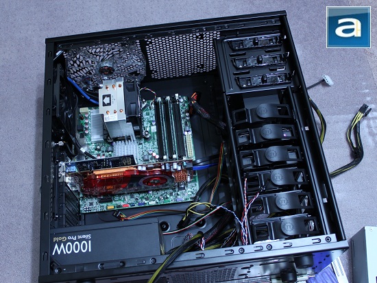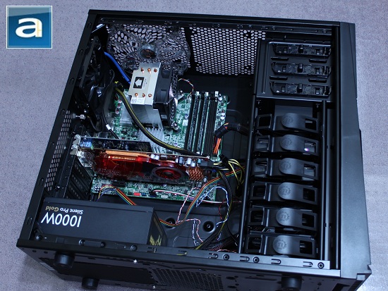 The Thermaltake Armor A60 gives you plenty of space to work with, so it is really up to you whether you want to install the motherboard or the power supply first. For my preference, I dropped the power supply prior to installing the motherboard, so I can get the minor cabling sorted out before creating a big mess -- along with the front panel I/O, audio, eSATA, and USB cables ready to be plugged in once the motherboard is settled. Three risers were screwed in, and I left the rest to the integrated bumps for easy installation of the motherboard.
