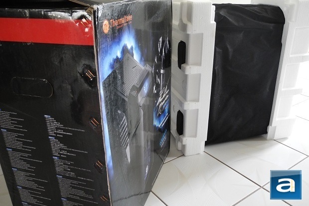 Upon opening the box and removing the knight from his estate, we find the Thermaltake Armor Revo Gene packed in between two giant pieces of Styrofoam to keep it from any rough journeys along the way to the designated consumer location. To preserve the integrity of the chassis and protect it from any harm that may have entered the box, Thermaltake covered the case within a black fabric bag.