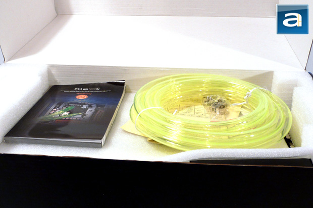 While being a product reviewer can be a busy and long job, it is always nice to have a new product box to open up and play around with. Sometimes, you get to play with awesome products, and other times, not so awesome products. However, I can never get over the satisfaction of opening something new; it is like having Christmas presents all year round. First thing that you will see when opening the Thermaltake Bigwater 760 Plus is the bright yellow-green tube surrounded by Styrofoam. There are other things, but that tube just stands out, and you can't help but look at it and say, "cool". I admit the tube is a bit on the bright side; fortunately, it does not hurt your eyes to look at, so no sunglasses are required while installing this cooler -- but it would look pretty cool if you did. The next item in the box is the installation manual. Now I assure you it is not a long read. It covers fourteen languages with pictures for each, taking up about eleven pages per language, so you can easily imagine that makes for a pretty big manual. I suspect it would be a pretty good fly swatter after I'm done reading it. Additionally, Thermaltake was kind enough to print off the warranty registration, and warning about running a pre-installation test. The last piece you will find on the top layer of the retail box is a tiny little package containing some screws and tube clamps for the installing the cooler. Now that we have gone over the top layer, it's time to dig even deeper into this cooling solution.