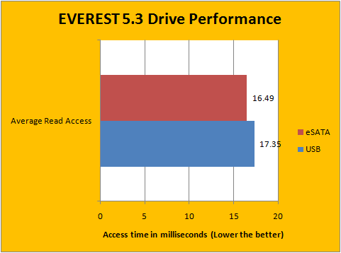 Access latency usually isn't quite interface dependent -- although still affects to a small extent -- and benchmarking the Thermaltake BlacX Duet with regards to the USB and eSATA interface is no exception. USB had a slightly higher access time of 17.35ms versus eSATA's 16.49ms; similar results are seen again in our HDTach run in just a short moment.