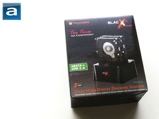 When we reviewed the original Thermaltake BlacX back in April 2008, we commended Thermaltake for marketing such an innovative and convenient product, but we complained about its lack of essential features such as eSATA. The idea of allowing users to quickly swap internal hard drives on an external interface on-the-fly is undoubtedly excellent, but its execution could've definitely used some improvement. A few different variations of Thermaltake's BlacX were made since then -- a nearly identical station with added eSATA support, as well as the SE version that provides four USB ports in front. Sounds great, right? Well, how the heck do you make it better? Fear not. As far as Thermaltake is concerned, there is only one way to make the BlacX product line twice as good as it is already: Combine both of them into one unit, and then call it the 'BlacX Duet'. The end product? Thermaltake's latest hard drive docking station! As its name suggests, it is designed to combine elements of its excellent original 2.5" and 3.5" serial ATA hard drive compatibility, add eSATA support from the second iteration, as well as the tried and true USB support from the first edition for maximum compatibility -- the Duet now features bays for accommodation of up to two desktop and/or laptop hard disk drives too! How's that for a change? We cracked one open for you to see how it works out in real life.