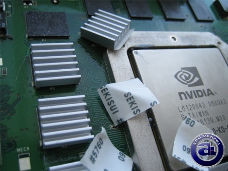 RAM heatsinks are included out of the box as well; peeling the covers off reveals an adhesive surface on the contact area of the memory heatsinks. The adhesive material is heat activated; don't expect it to stick very well out of the box -- it was actually quite a hassle because they will keep falling off in the beginning before you can even get your graphics card into your computer. If your surface isn't clean enough, it will stop sticking -- I actually had to use a bit of some Arctic Silver Ceramique in between to make it stick. It worked quite well, since these aluminum pieces are quite light.