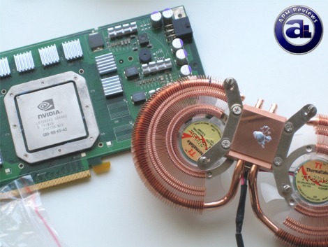 The Thermaltake DuOrb is a high performance cooler -- the idea is excellent, and it works very well in not only dissipating heat away from the GPU, but also drawing air over the entire graphics card. It's reasonably easy to install, and the cooler occupies only one slot below -- no more than a stock 8800GTS cooler. I also like the implementation of blue LED fans at the bottom; however for those who don't like it you can't turn it off. The biggest gripe to the Thermaltake DuOrb is that out of the box it's way too loud -- you'll want a fan controller to go with it, or at least some method of undervolting. It would be nice if Thermaltake made the DuOrb with a 3-pin motherboard connector, or at least a converter so I don't have to rip out my soldering iron again.