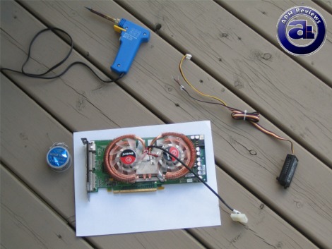 Being that, I wasn't entirely satisfied with the results -- and the 4-pin Molex is no help when it comes to speed control, especially when I don't use any fan controllers. Digging around, I found a 3-pin variable resistor I have laying around from a Zalman heatsink I bought long ago, so I ripped off the male end and exposed the wires -- grabbing a soldering gun, I soldered the wires into the active pins on the Thermaltake DuOrb's Molex connector. I then plugged the female end of the variable resistor into my motherboard.