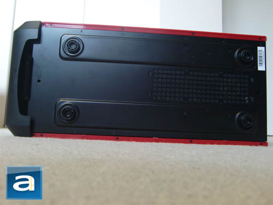 On the right side of the bottom, there is a mesh for a bottom mounted PSU fan air intake. This is a nice addition in the sense that for such a power supply design fan orientation, airflow will not be blocked -- ensuring that any power supply installed will still be able to receive adequate airflow.