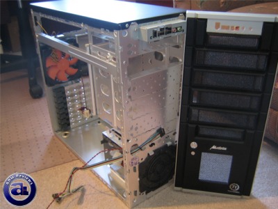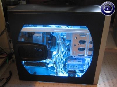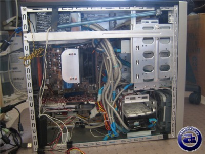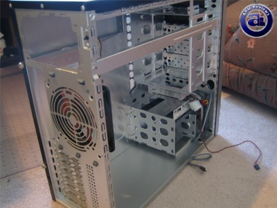 A shot at the back of the Thermaltake Matrix VX. As you can see, hard drives will be pointed towards the side of the case when installed in Thermaltake Matrix VX's hard drive cage. Although tidy cabling would be a little more difficult, the way they implemented it is much more convenient for us to swap hard disks. In older designs, adding or removing hard drives is often a hassle because add-on cards such as graphics and sound boards often gets in your way.