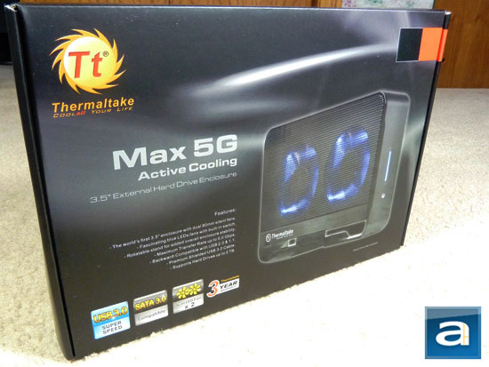 Have you ever woken up in the morning and wished for a breakfast in bed? I am certain a few of you individuals have experienced this craving, and let me be the first to tell you that the Thermaltake Max 5G is exactly that craving taunter. Now, many of you are probably wondering what I am trying to get at here, so let me clarify -- bacon. Simply put, this hard drive enclosure smells like bacon in my opinion. Thermaltake must have some kind of telekinesis power, because who would make a HDD enclosure that smells like bacon? Let us not get too carried away with the "bacony" goodness of the Max 5G. Many would have expected this "meaty" enclosure to make a lot of noise, considering it incorporates two fans. With two fans, one would at least expect to hear much of the fan noise. However, after turning it on for quite some time, it was actually not too bad. Continuing on with my daily chores, it almost made me think the fans were not even on, but the stylish blue LEDs convinced me otherwise. I am not sure what is with all the blue LED fans that manufactures keep using on almost all the electronics I use, but it is almost getting to the point where my computer is now a glowing blue monster in the middle of the night. Thermaltake sure seems to be messing around my head when it comes to this enclosure. Read on to find out why!