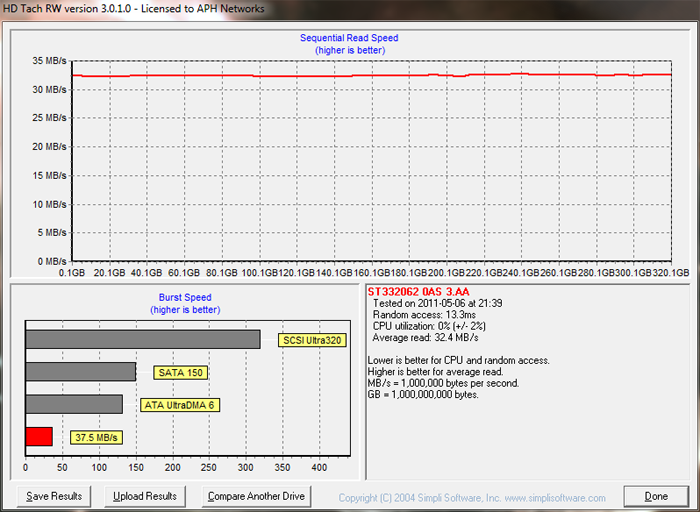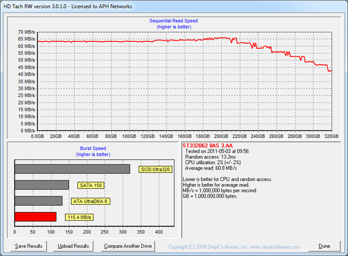 Test 1: USB 3.0 with 320GB 3.5" Seagate Barracuda 7200.10 SATA 3Gb/s HDD