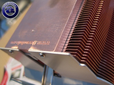 If you look carefully at how the fan is mounted on the heatsink, you will see that it is attached to the fan cage -- the way it is implemented resembles the way that Arctic Cooling installed their fan on their Freezer64 Pro. According to what I know, mounting the fan on the fan cage (Reverse fan) reduces vibrations, therefore reducing noise. When I first installed this heatsink, the RX-K8 vibrated uncontrollably, causing our whole computer to shake while generating an immense amount of noise. It turned out that the screws on the fan were loose. After tightening up the screws, the noise level has been cut down slightly (Although not as much as I hoped it would be) but the case still vibrates. During our tests, we noticed that the stock AMD heatsink causes considerably less vibrations than the RX-K8 even though the stock HS/F runs at an average of 400rpm faster than the Thermaltake. Remember, AMD stock fans have no special fan cage for a reverse fan.