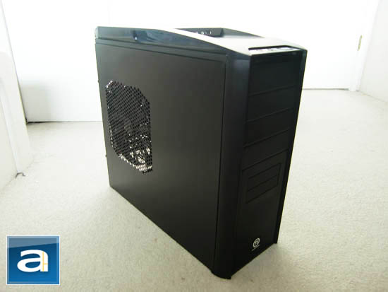 Like the rest of the chassis, the V9 Black's side panels are constructed out of SECC that matches the rest of the case. Unlike the regular Thermaltake V9, the V9 Black features a large 230mm side fan instead of a right side window. Unlike the front intake fan, this one is not LED lit. This fan pushes air into the case and over the core components of your system, including parts such as the video card, memory, chipset and any other cards you may have installed in the expansion slots. This fan is, what I think, an important component of a gaming case. With the graphics card being such a hot running component, it really helps when you have a huge 230mm fan pushing fresh air towards it. However, while this increases the magnitude of airflow into the case, it will distract regular airflow patterns from front to back as well as case air pressure. Build quality wise, this is where I think there needs to be some improvement as the side panels are very prone to bending and denting.