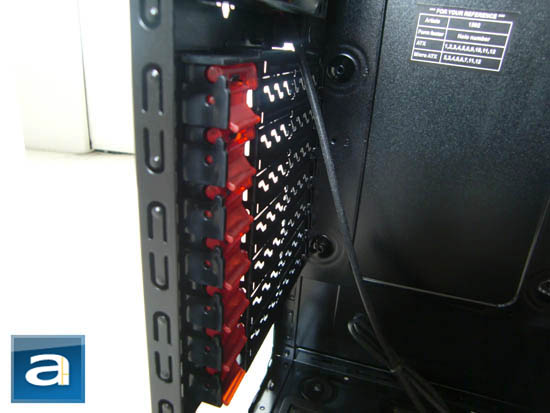 At the very rear of the case, below the I/O panel, we have the seven expansion slots that again features tool-free installation. Unlike the 3.5"/5.25" drive tool-free locking system, I find that the expansion slot locking mechanism is not quite strong enough to hold a video card in place. There is quite a bit of a wiggle with my ATI Radeon HD 4870. I would have gladly sacrificed a tool free installation in exchange for a more secure mounting system for my video card, and any other expansion cards.