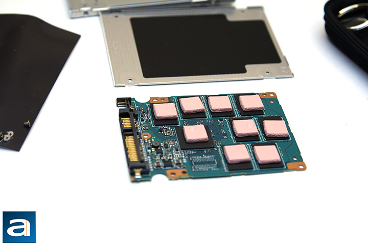 Moving on, the Toshiba OCZ VX500 512GB's shell is attached to the aluminum backplate by four screws at the top. After removing all four screws, the cover will come off, and you are well on your way. There is no warranty seal. As such, you will not void your five year ShieldPlus warranty. ShieldPlus is OCZ's term for advance replacement, free return shipping, with no requirement for an original receipt. For an SSD manufacturer, this is one of the best warranty programs available in the market today. In case you are uncomfortable with taking apart your brand new SSD, to save you some trouble, I cracked mine open to take some photos of its internals for you to see. You will see a full sized PCB, as you can see in our photo above.