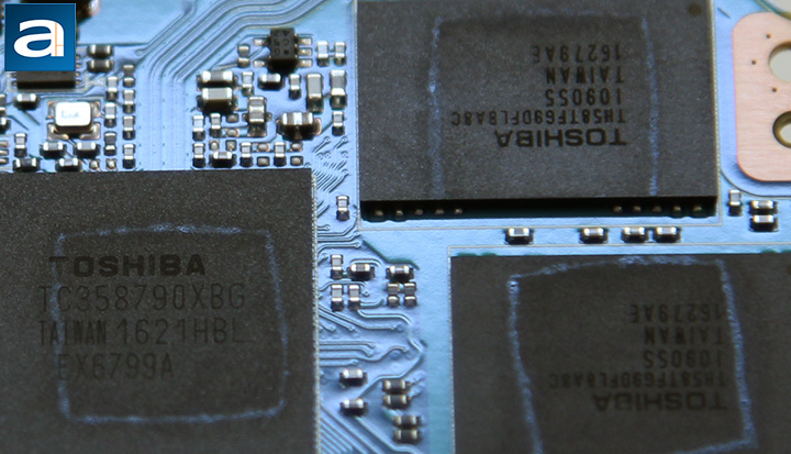 A total of two NAND flash chips are found on the Toshiba OCZ VX500 512GB solid state disk, with all of them on the same side. The chips used are Toshiba's TH58TF69DFLBA8C NAND flash memory, with a capacity of 64GB per integrated circuit chip. These are multi-level cells manufactured on the 16nm fabrication process. It has a very good rated write endurance of 296TB, which equates to roughly 162GB per day for five years. Unlike some SSDs we have used in the past, there is no over-provisioning, so they all come together and make up for its 512GB storage capacity. You will see 477GB in Windows. Models with 512GB capacity and below like this one is not equipped with any DRAM.