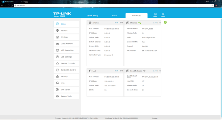 Overall, the firmware is decent in the options and configuration choices available to users, though I will say it is still lacking when put up against options like DD-WRT. Those who are looking for more customization and features may be left waiting for DD-WRT support for the TP-Link Archer C3150. This being said, it definitely still offers a lot more options compared to the basic user's router provided by the ISP, giving control to the hands of the user. The user interface is also bright and easy to navigate, with the sections being logically laid out for quick access, making it easier to navigate for the beginner to enthusiast user.