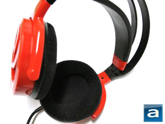 In the photo above, you can see the headset ear cups more clearly. The ear cups are not interchangeable, and follows a fairly standard velvet cushion ear cup. The ear cups are ergonomically designed to follow an oval shape that will fit around the user's ears fairly comfortably. The ergonomic cups can be rotated to fit the user. I would have liked to see the Tt eSPORTS Shock Spin come with interchangeable ear cups, especially for users that may enjoy the company of leather ear cups rather than the velvet fiber cushioned ear cups. Leather ear cups tend to provide more insulation, and in terms of gaming, that could very well mean a better overall gaming or audio experience. However, cushioned ear cups tend to provide better airflow for the ears, which can keep ears cooler in a hot room full of sweaty gamers, haha.