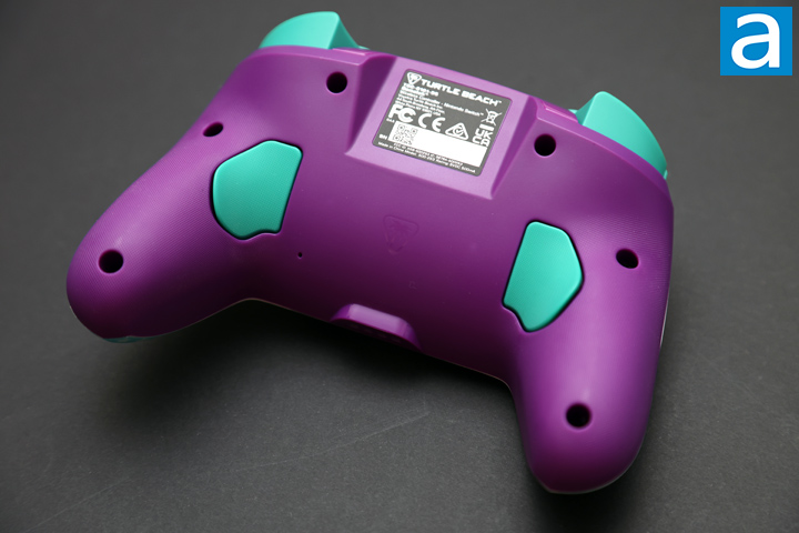 Just like other Turtle Beach gamepads we have seen, there are two more buttons on the back of the Rematch Wireless Controller to augment your experience. These two paddles reside right where your fingers wrap around the device so you can quickly actuate them with immediate presses. These bottom buttons have a nice tactile click with each press and have a slightly speckled pattern to help you feel the button. These can be set with the small extra button on the front. First, hold the small button and press one of the paddles. Next, press the button you want the paddle to execute. If you want to reset or disable any of these buttons, you can press the extra button and double click any of the paddles. Otherwise, there is some Turtle Beach branding and certifications on the back label.