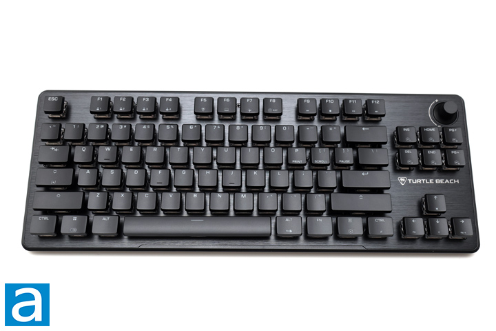 Turtle Beach is no stranger to keyboards, as their team has been making them for quite a while. Unsurprisingly, the design has remained the same since the ROCCAT days, and this is visible with the Vulcan II TKL. Once again, we have the same exposed metal backplate with a slightly brushed finish. Next, we have the same island-style keycaps that expose the clear housing of the mechanical switches underneath. Turtle Beach does state third-party keycaps will fit over these switches too, so if you do not like this, you can change it. The aluminum backplate does not hide fingerprints, as handling marks and grease will show up under direct lighting. Unlike the Turtle Beach Vulcan II TKL Pro, the aluminum backplate is only what exists on the top, as the beveled edge, sides, and bottom are all plastic. The Vulcan II TKL only comes in black. Personally, I think it would be nice if Turtle Beach tried something different, but this style is in line with their other keyboards.