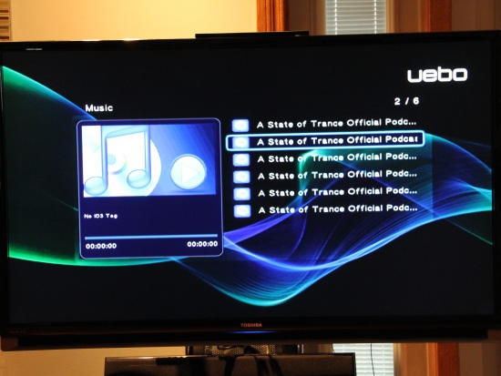 The UEBO M100 is fairly boring when it comes to music. Again, for myself, I only listen to music on my iPod or on my computer. Never will I move MP3 files into a media player and play it on my TV. Of course, you can argue that it is better to listen to music through your home theater setup than your computer, but remember this: The UEBO M100 does not have S/PDIF out at the back. So if you are looking to hook up your device to your receiver, then composite is the only way to go. The music player on the UEBO M100 is much like the photo viewer. You can play the music, control its volume and placement in the song, play with a few more options, and that's about it. For music, that's all you need. So long the music files can be played, there really is no problem with the media player, but it is really boring. I think stuff like visualizations or album art is quite standard nowadays, and there is no reason why the M100 does not have it. Also, I would like to see s a little bit more complexity in the player. If, for example, I was a individual who always played music throughout the house using my home theater system, I would like a device that will allow me to personalize my music -- although it is rather unfortunate that the M100 does not have any real digital audio interface that can interface with your home theater system. Music players like iTunes are widely used because of their ability to organize, personalize, and ultimately play music without much effort. Unfortunately, the UEBO M100 cannot do much beyond creating a playlist, and playing it. The audio file formats supported by the UEBO M100 include MP3, OGG, WMA, WAV, AAC and FLAC.