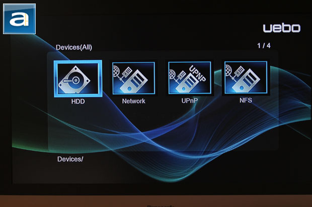 The boot time of UEBO's M400 is approximately 20 seconds, and runs on the same operating system as the UEBO M50 and M100. So if you want my colleagues' perspectives on UEBO's user interface, please feel free to read their reviews as well. The GUI is generally very consistent across the system; but being a home entertainment device, I have to say the user interface still reminds me of Linux to a certain extent. You know, the raw, technical, and not user friendly part of it. Okay, it is not as raw as some devices I have used in the past, but for something that looks so good on the outside, I was expecting a little more when I plugged it into my HDTV. Upon startup, the main screen lists seven menu options, and can be scrolled from side to side. A simple transition animation occurs when you move through the icon selection.