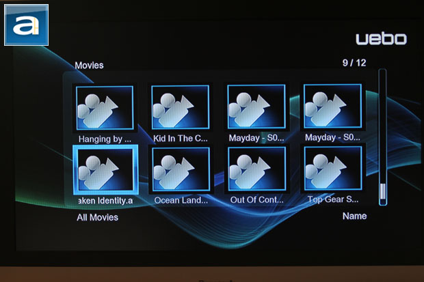 For simplicity reasons, I installed a Kingston HyperX 120GB SSD into the UEBO M400, and loaded some media files into it for testing. Unlike Jeremy's M100, I can just format the drive through Windows over USB, and it will work flawlessly -- it is not necessary to do this through the setup menu on your TV. The Movies screen simply shows a matrix of all index movie files on the media player, but you can change it to List and Preview mode. In Preview mode, it will show a list of the available files, with a window on the left to let you have a glimpse at what is going on after it has been highlighted. As I have mentioned in my Patriot Box Office review, to improve performance and usability, it would be excellent if the interface displays a generated thumbnail of the video in the preview window immediately when the user hovers over the file instead. If the selection bracket stays over the video file for a couple more seconds, then it should start playing a series of random short clips from the video, rather than starting from the beginning every time. This would prove to be much more useful for the end user, since most TV shows will start with the theme song, and most movies will have opening credits at the beginning. The live preview is definitely a nice touch, but previewing from the start has very little value.