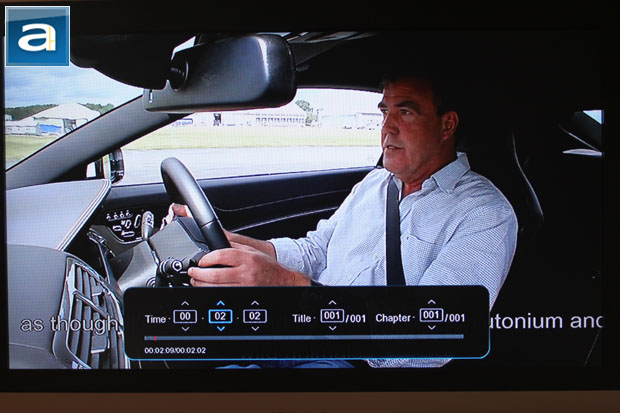After a video has been selected for playing, it will begin playing immediately regardless of whether you have watched it before. However, a prompt will appear on screen while the clip is playing to ask if you want to continue where you have left off. That is a pretty good idea in my opinion. As far as controls are concerned, the only way to view the progress bar is when you hit the "GOTO" button, or left and right on the D-pad. If you fast forward or rewind, it will only show the speed at the top left corner. Subtitles are turned on by default, but you can turn it off by hitting "SUBT" on your remote, followed by the "OK" button on the D-pad.