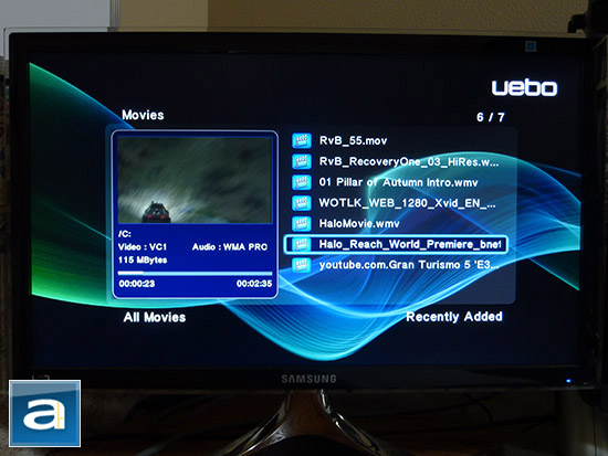 When it comes to software, as a software engineer, I could say many things. However, I'll stick to the basics. Stability is a very important aspect of software; it is even more important that usability, because without it, users will have no confidence in the device. On three occasions under normal use of the menus, I experienced a major decay in responsiveness, which was followed by a complete lockup of the device. Considering this occurred multiple times while nothing demanding was happening leaves me unconfident of the UEBO M50. Usability is typically what many users are going to be most interested in. As far as this device goes, it does provide a number of convenient functions and easy navigation, but not everything is self-explanatory or friendly at first. The file manager is a good example of where things get rough. UEBO has the device scanning feature turned off by default; a feature used to build up the library for video, audio and pictures of the devices. This means that many users are going to think something is wrong with the M50, and those less technologically inclined might never even bother going to the settings menu and turn it on. Responsiveness is also a major aspect of software; this is usually what keeps consumers wanting to continue to use your device. People rarely ever want to sit around and wait for something to finish. The implementation of a busy icon was very nice to have, but occasionally I found I had to wait around too frequently when simply using the device. The only issue I had was sometimes pressing keys on the remote would go undetected. This was frustrating, as I had to press the same button a few times, and make sure my view is clear. This is less of a software aspect, but even sometimes when I was a foot away and the remote pointed directly at the UEBO M50, nothing would happen for a few key presses. For performance, well, the next section is for you.