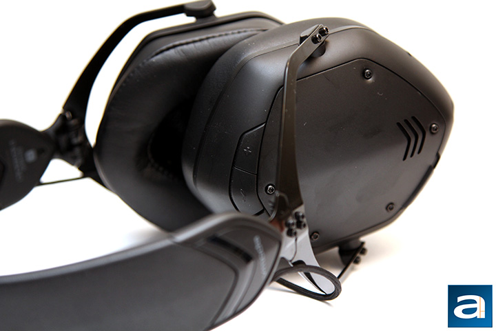 Exclusive to wireless Crossfade headphones are three buttons at the top of the right ear cup, as well as a three-way slider switch at the bottom. We will talk about that in just a moment. For the three buttons, the user interface is identical to any smartphone headset remote; hit the multi-function button with V-MODA's logo once to answer a call, and hold it down to reject. For music control, press once to play, twice for next track, and three times for previous. The '+' and '-' should be self-explanatory -- they adjust the volume up or down, respectively.