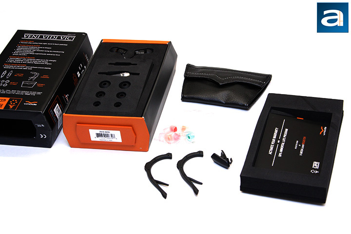 Upon opening the box, you will be greeted by its all black foam padded interior. From a practical standpoint, it protects its contents well. From an aesthetics standpoint, it looks very classy, just the way the company meant for it to be. Out of the box, you will receive the V-MODA Zn earphones in front, with the rest of the accessories in the cavities at the back. These accessories include a pair of sport earhooks, four sizes (XS, S, M, and L) of Bliss 3.0 fittings in both black and clear for a total of eight sleeves, shirt clip, leather case, and a user manual. It comes with quite a bit accessories to accommodate a wide range of user preferences. The leather pouch looks almost exactly the same as the one that came with the Vibe II, except the new one has white stitching, and is held closed by magnets rather than two buttons. Having stuff like an OEM leather pouch is absolutely invaluable for those who plan to take the Zn out the front door of their house. Not only does it keep your $180 earphones protected, but I also found the case is just as fashionable as the earphones itself.